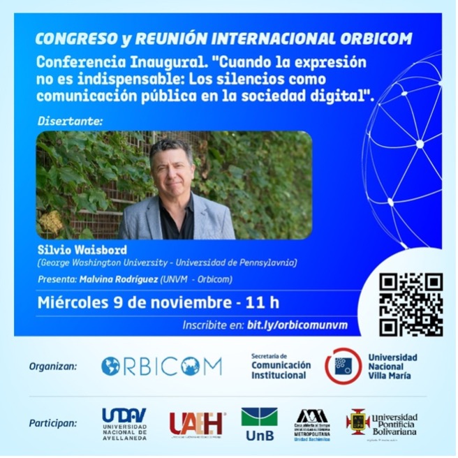 En actividades previas a la formalización del Acuerdo de creación, la Cátedra UNESCO COMUNIC.AR llevó a cabo la organización del CONGRESO Y REUNIÓN INTERNACIONAL ORBICOM 2022 “Comunicación pública para la justicia social, los derechos humanos y el desarrollo territorial en la era digital”, del 9 al 11 de noviembre de 2022 en modalidad híbrida. En la conferencia inaugural, el académico argentino radicado en Estados Unidos, Silvio Waisbord, abordó la problemática de las expresiones y silencios en la comunicación pública en la sociedad digital.